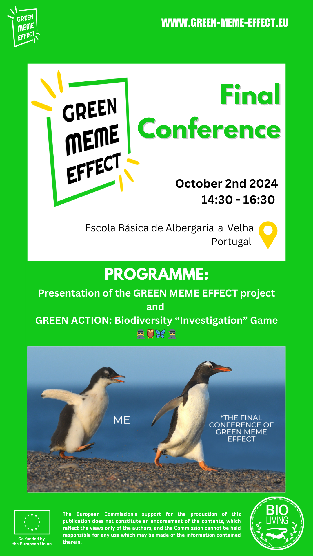 Am 2. Oktober 2024 findet die Abschlusskonferenz des Erasmus+ Projektes GREEN MEME EFFECT in der Escola Básica de Albergaria-a-Velha in Portugal statt!